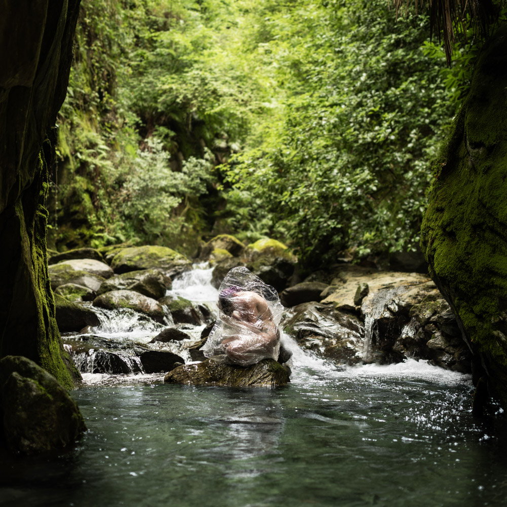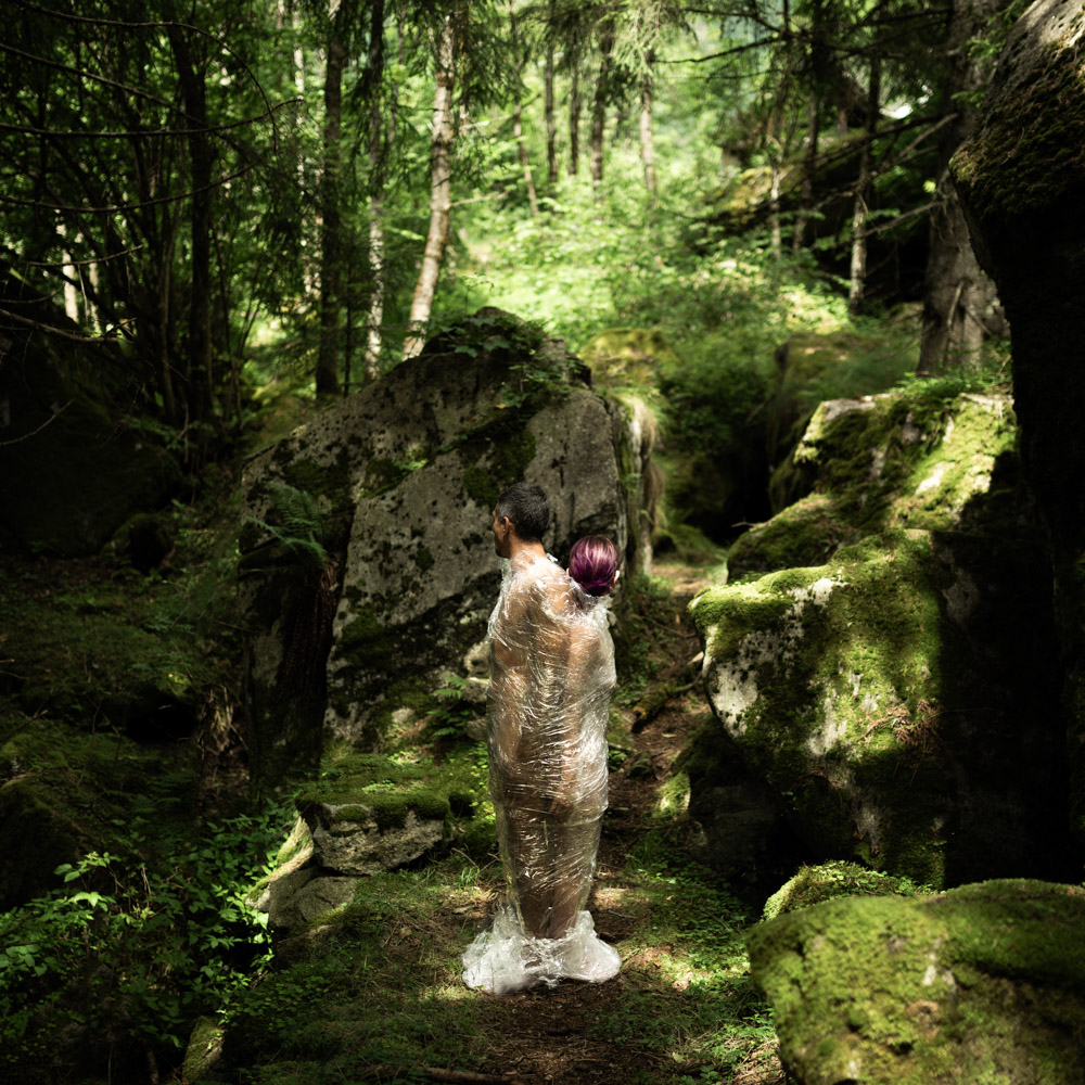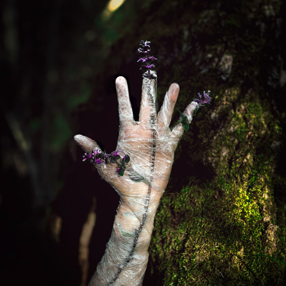 Attraverso queste fotografie, si intrecciano visioni di bellezza e ferita, di morte e potenziale rinascita. La plastica, simbolo di prigionia e inquinamento, si trasforma in pelle da cambiare, in guscio da rompere per tornare a fiorire.